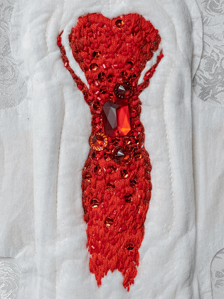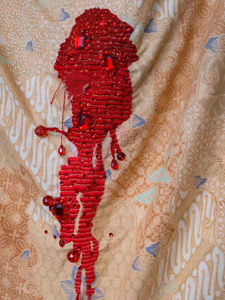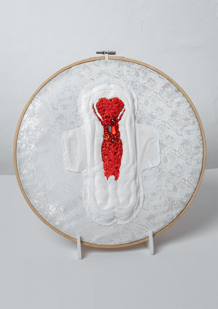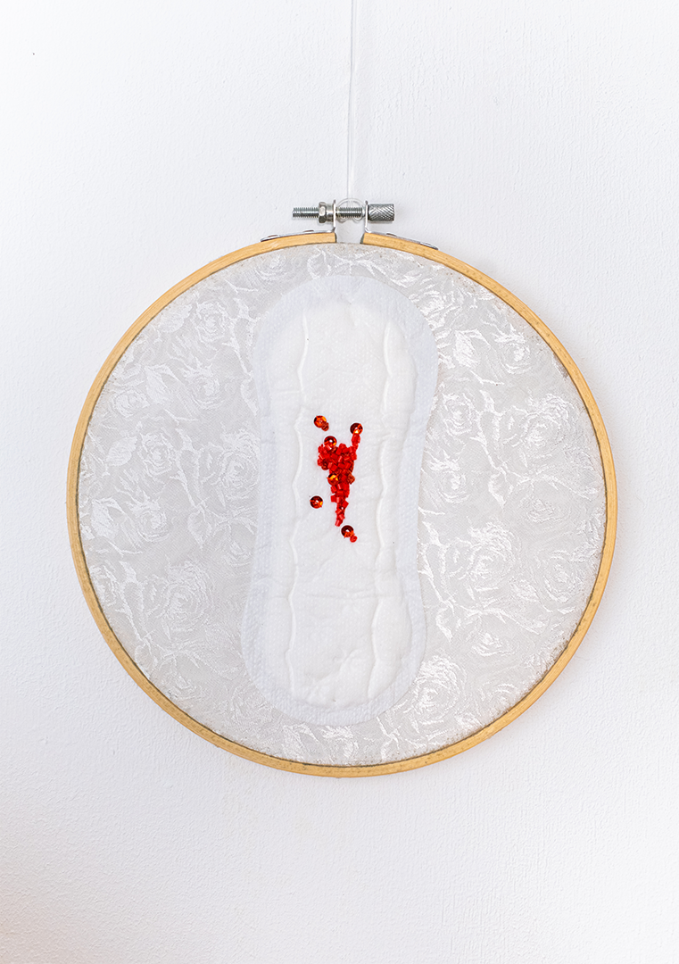 When I think of menstruation, I think of pain, stigma, and shame. I think of how having your period is such an intrinsic part of being human but we can’t speak openly about it because it’s treated with so much disgust by people who don’t even experience it first hand. This series of works aim to confront that perception, to challenge myself and my audience to view menstruation as something essential, even precious; Arus yang Harus, a necessary flow. I chose embroidery as my medium for a number of reasons, one of which is its connotation to “women’s work”: i.e. a sphere of art that has historically been viewed as inferior, trivial, or frivolous compared to more “serious” male-dominated mediums. But mostly I chose this specific technique for how painstaking and tedious it is. With each stitch I gained an appreciation for the process as well as for my body. I wanted it to be a labour of love, a slow and steady unveiling: what was hidden is now seen, what was foreign is making itself familiar, and it is beautiful.