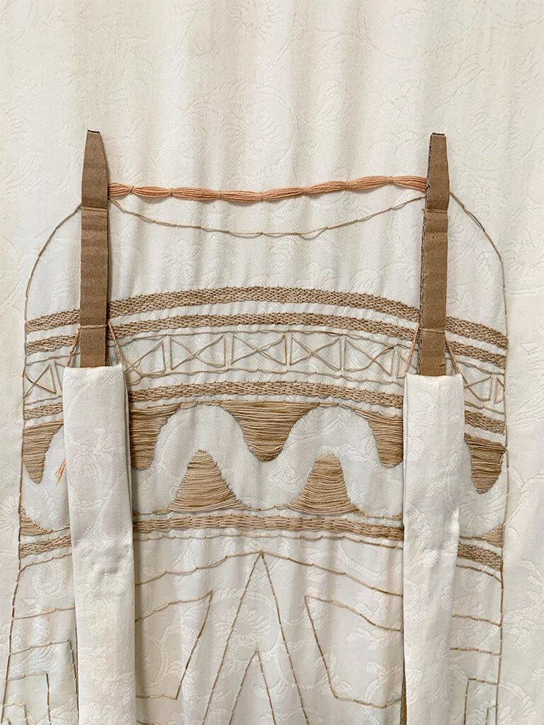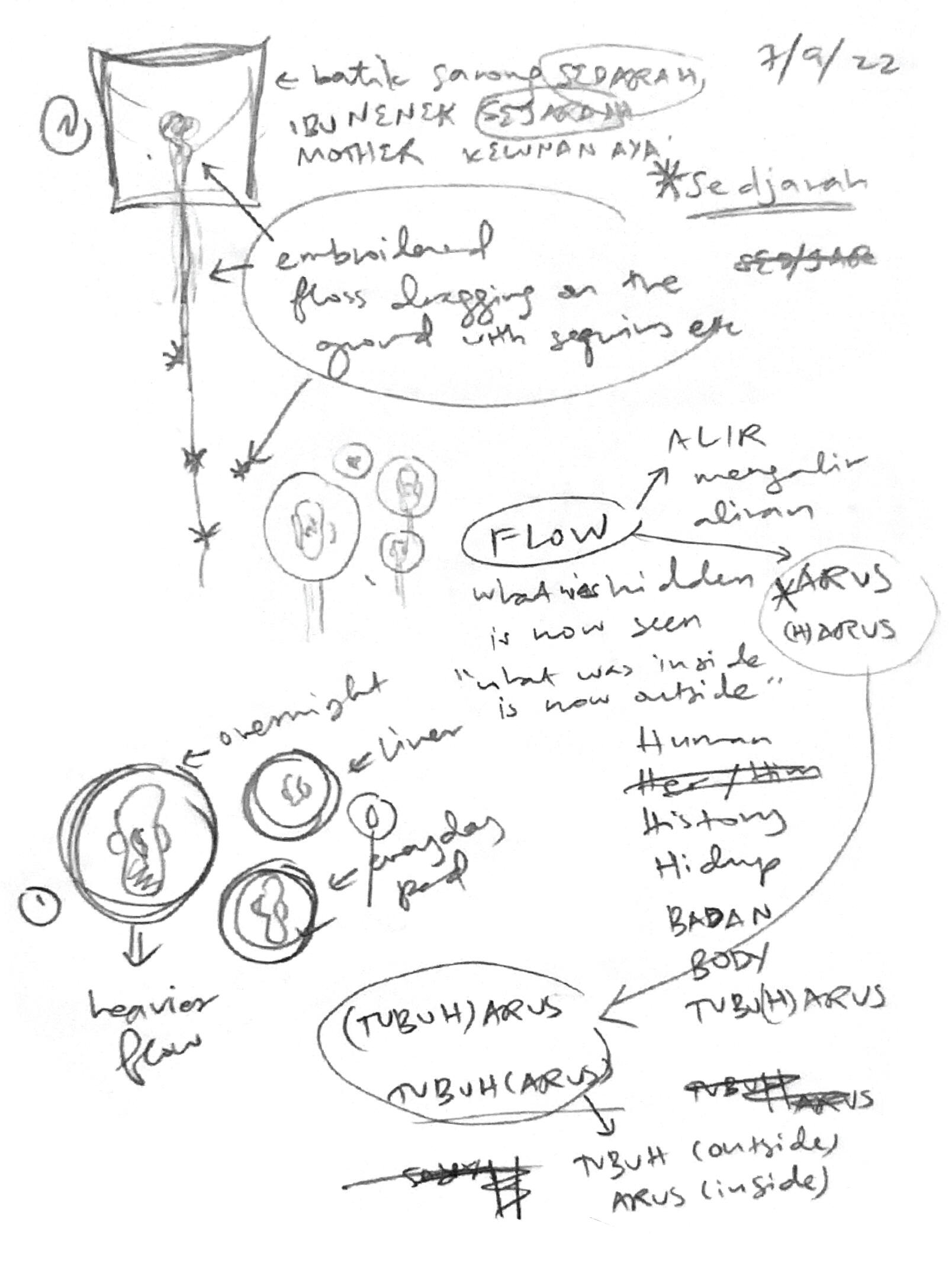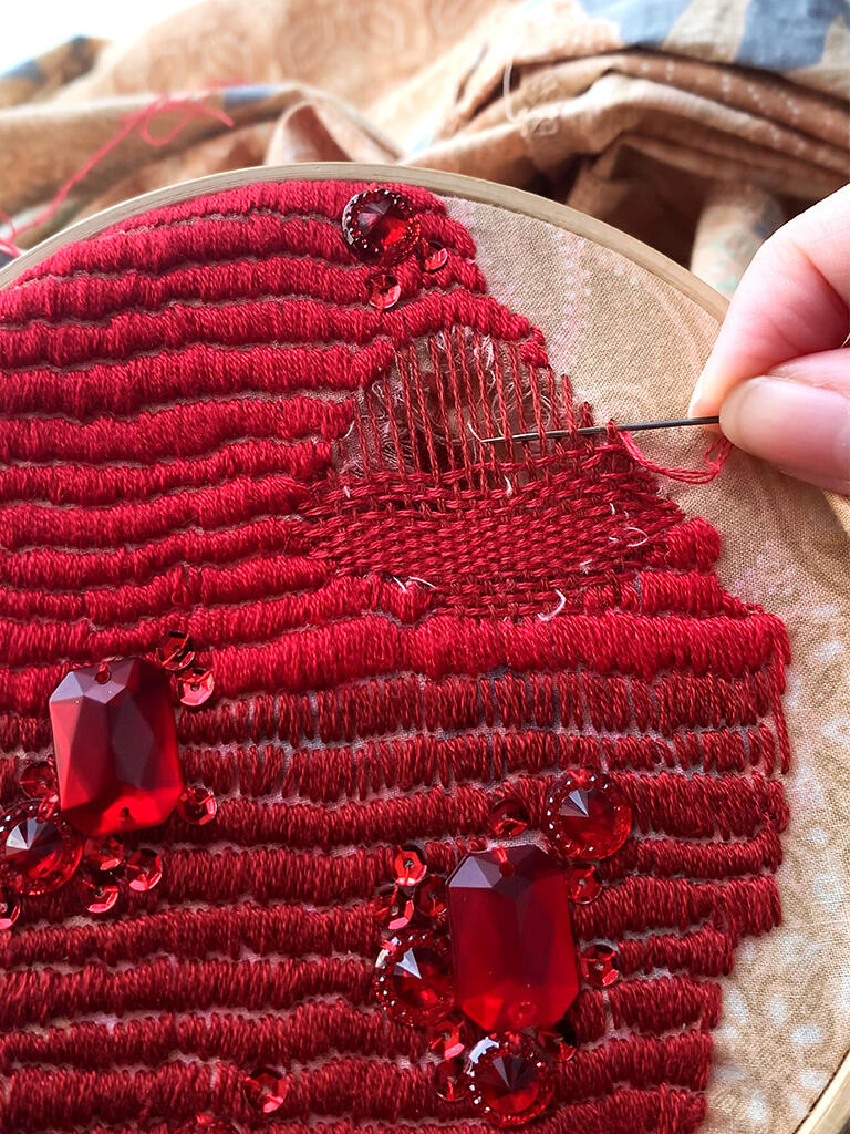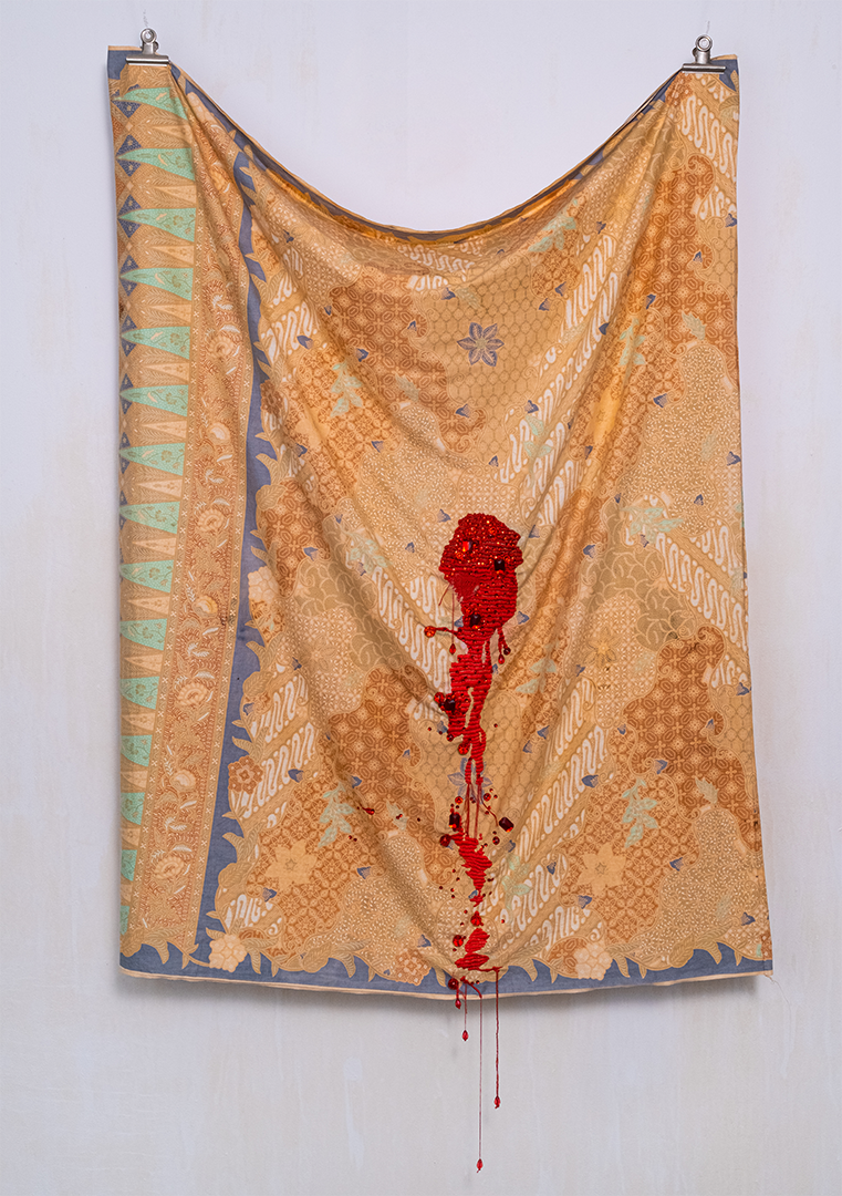 When I think of menstruation, I think of pain, stigma, and shame. I think of how having your period is such an intrinsic part of being human but we can’t speak openly about it because it’s treated with so much disgust by people who don’t even experience it first hand. This series of works aim to confront that perception, to challenge myself and my audience to view menstruation as something essential, even precious; Arus yang Harus, a necessary flow. I chose embroidery as my medium for a number of reasons, one of which is its connotation to “women’s work”: i.e. a sphere of art that has historically been viewed as inferior, trivial, or frivolous compared to more “serious” male-dominated mediums. But mostly I chose this specific technique for how painstaking and tedious it is. With each stitch I gained an appreciation for the process as well as for my body. I wanted it to be a labour of love, a slow and steady unveiling: what was hidden is now seen, what was foreign is making itself familiar, and it is beautiful.