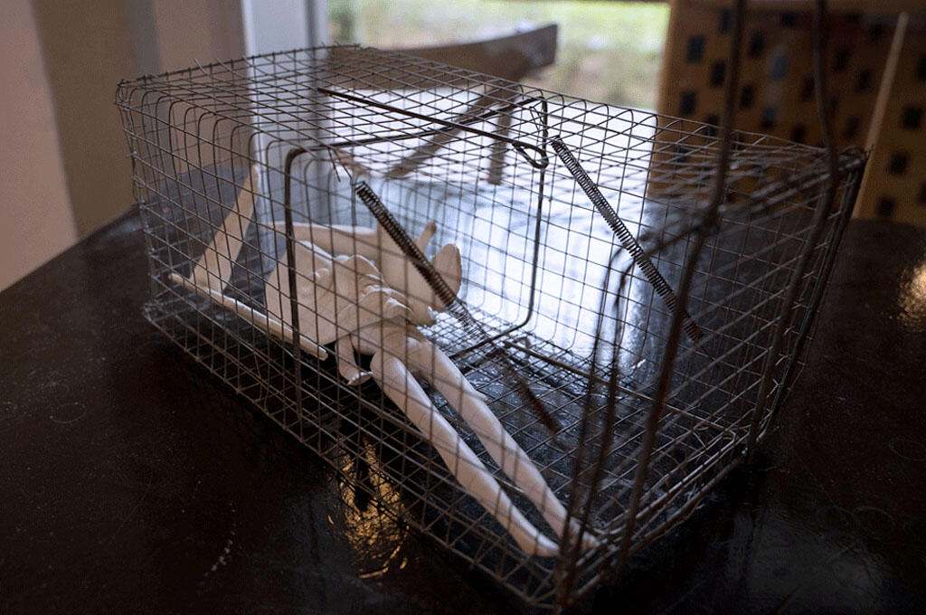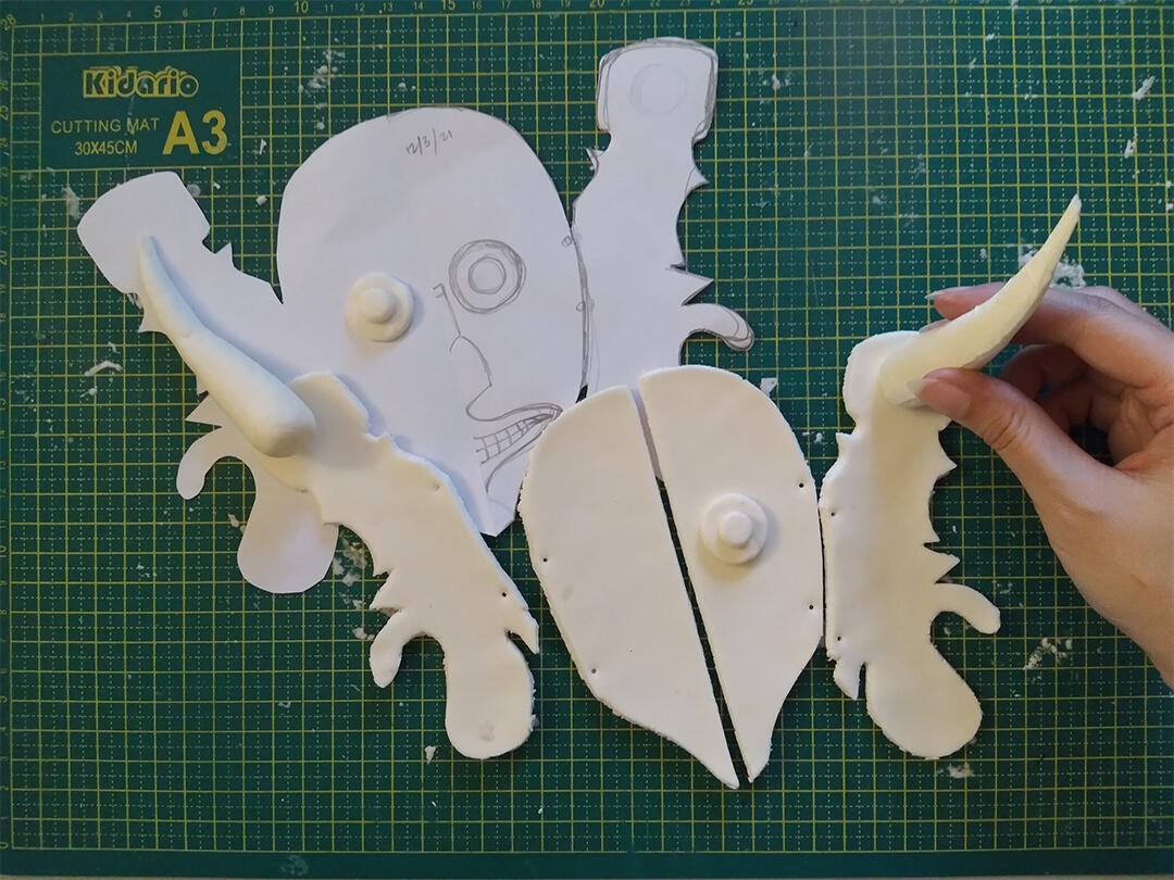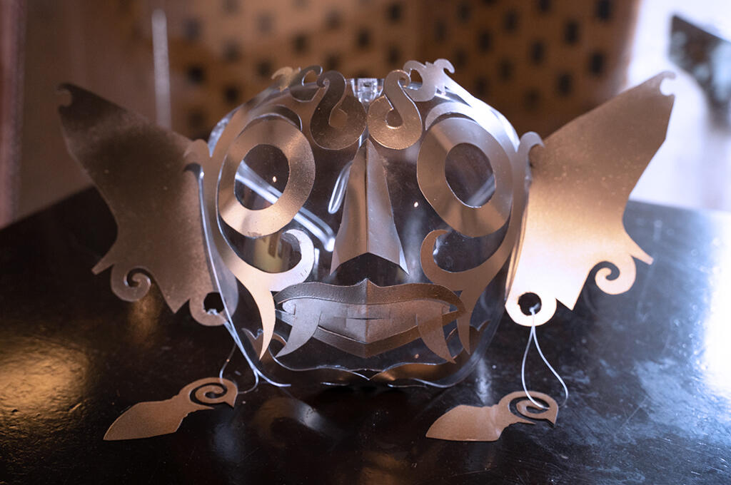 Hudo’ is the Kayan word for mask, worn by shamans during sacred rituals and ceremonies. These rituals were performed for many occasions and functions—to usher in a good harvest, to appease the spirits before a big event or battle with a warring tribe—and, most fascinating and topical of all, to scare away sickness. Mask as medicine, literally. Hudo’ I was created while we were all still adjusting to the “new norm” of the pandemic, and Hudo’ II was created a year after—the difference in my mental state and attitude while making each of these pieces is readily apparent. The connection of mask as medicine in the post-Covid world is the theme behind both, but they originate from two different perspectives. One, a feeling of claustrophobic powerlessness—bleached of colour, literally trapped, brought low from such a lofty, sacred position—while the other is more lighthearted and playful; a democratisation of mysticism, a reimagining of science as magic. Traditionally, hudo’ was a tool reserved exclusively for shamans (dayung), but now everyone wears a mask; essentially, everyone is their own dayung. Modernity has brought us increased literacy and decentralisation of data, and our old superstitions and belief systems have become obsolete. I was interested in what this intersection of spirituality and science would look like.